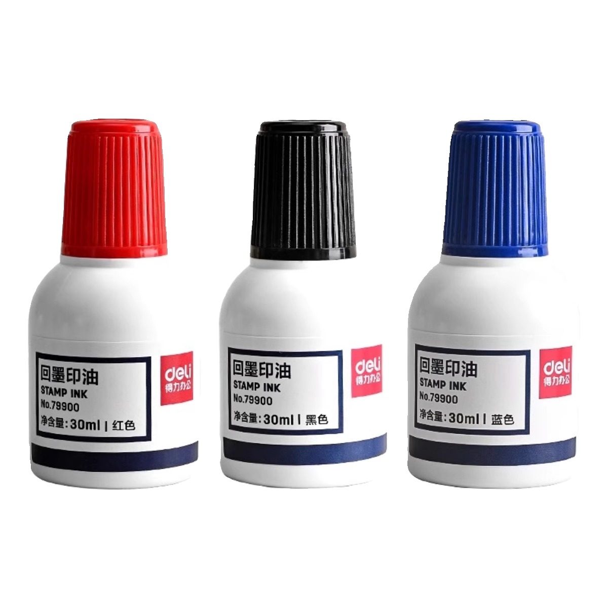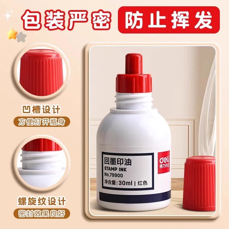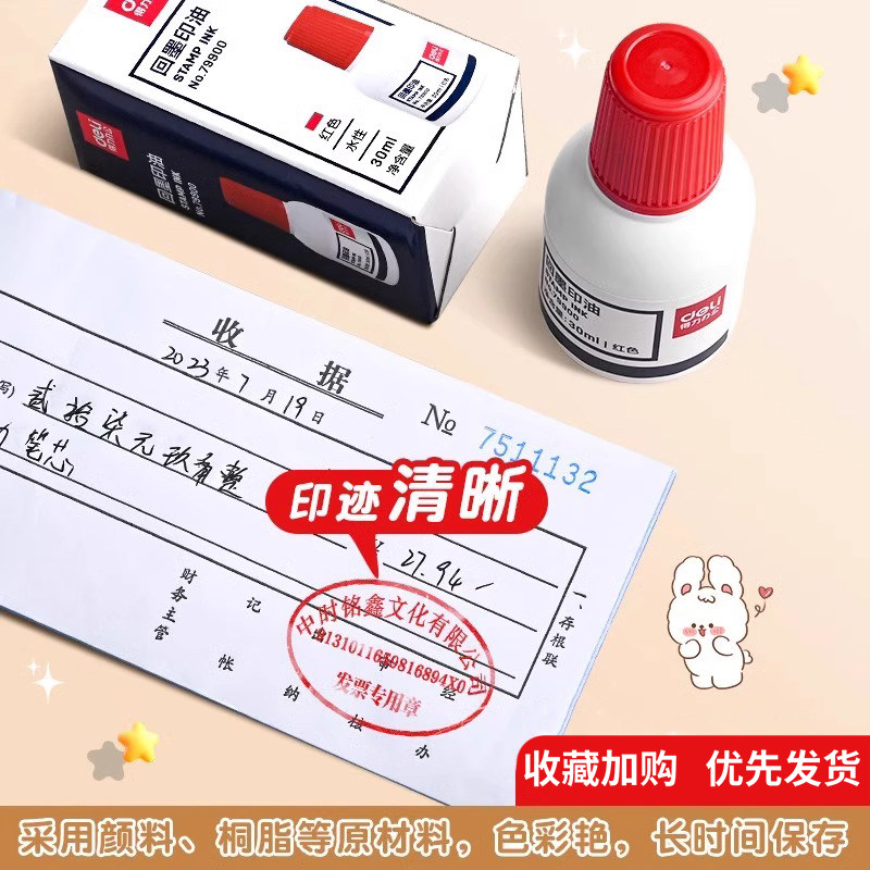 得力回墨印油水性速干印泥翻转回墨印章专用红色印台会计公章合同章发票办公章蓝色补充液快干印油办公用品