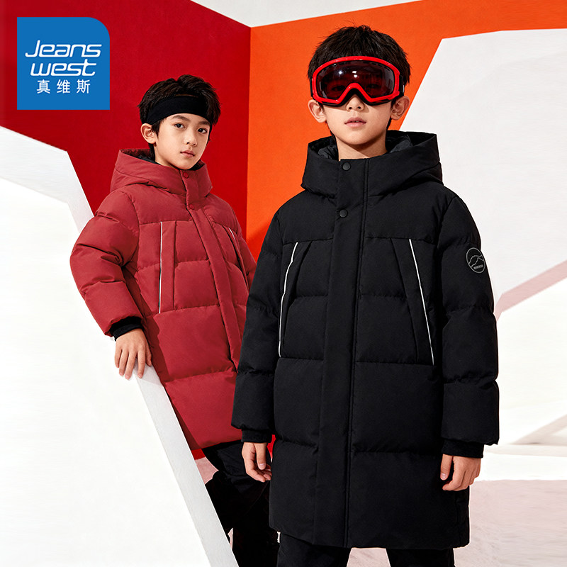 真维斯童装男童秋冬款羽绒服儿童2026马年防水冬装男孩90绒外套红