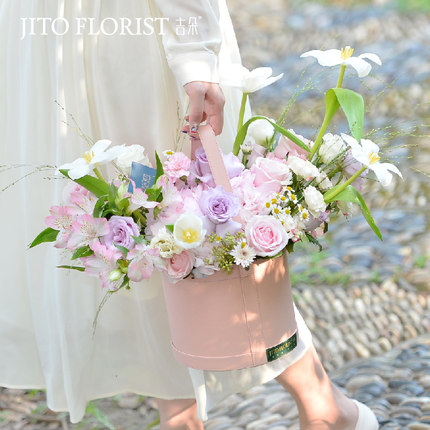 进口玫瑰鲜花礼物派对生日惊喜混搭礼抱桶同城配送速递