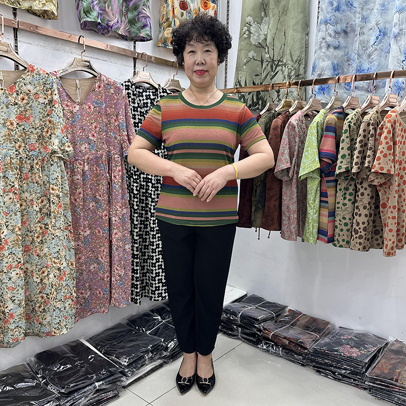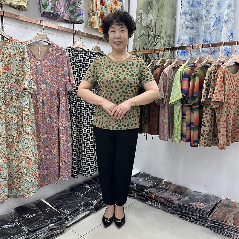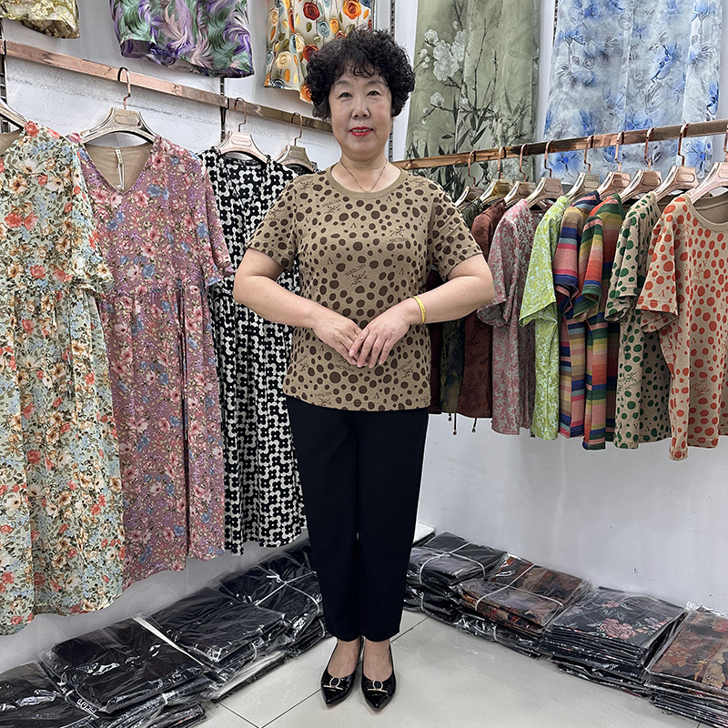 圆点宽松t恤衫短袖女40-50岁妈妈