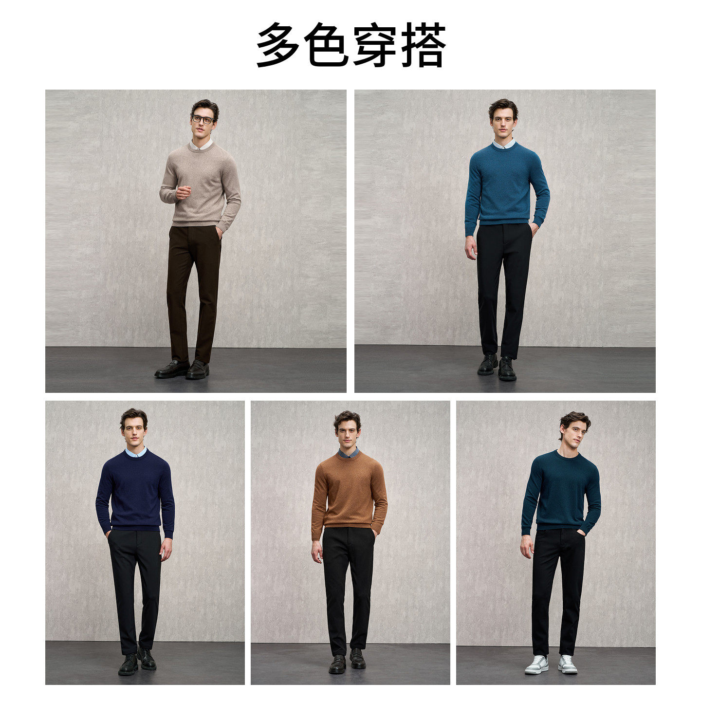 EMZ鄂尔多斯【羊毛羊绒】秋冬新款休闲圆领保暖针织衫毛衣男