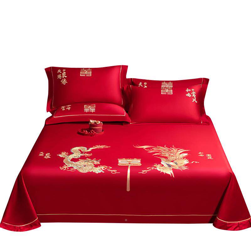 纯结婚大红长QX-2024-绒棉订婚床红色棉床单三件套品床上用婚庆单