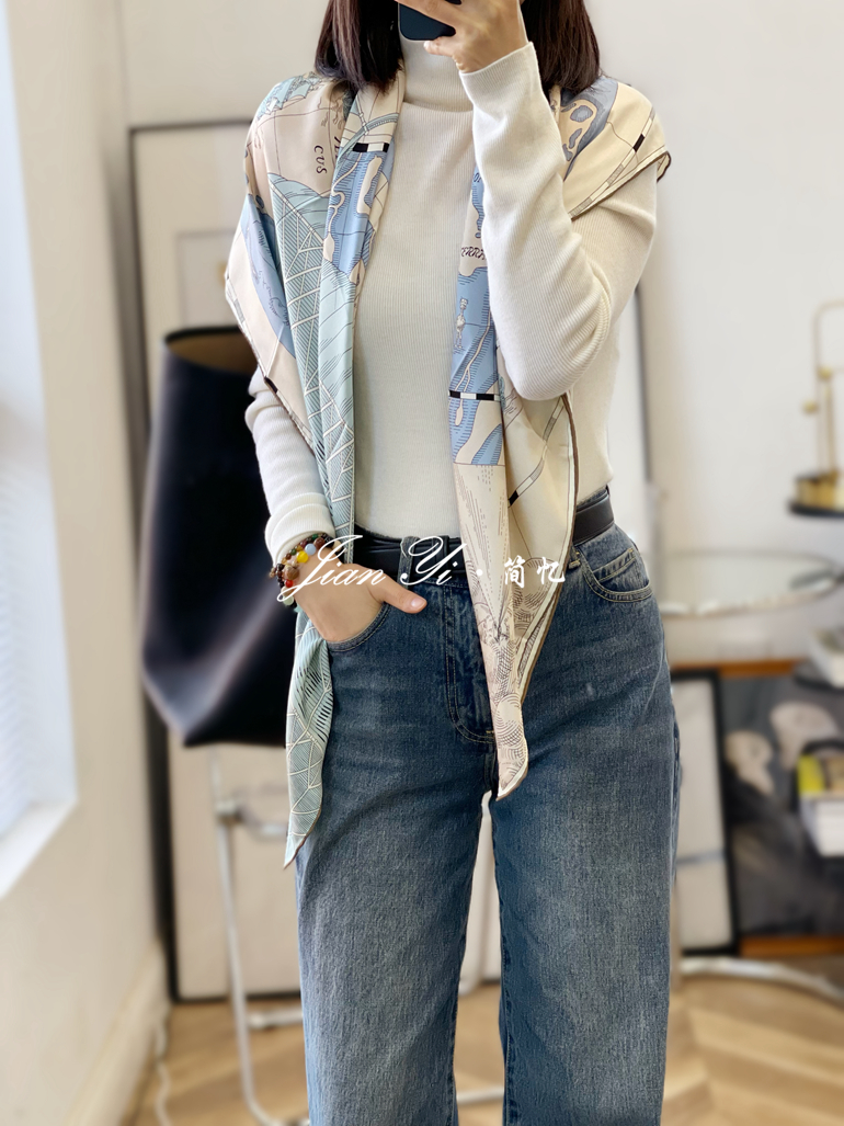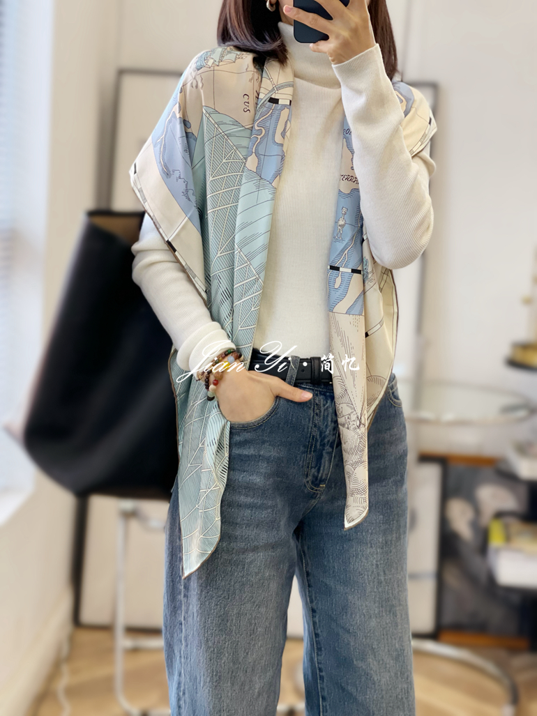 【环游世界】重磅真丝桑蚕丝围巾意罗绸缎105大方巾双面异色披肩