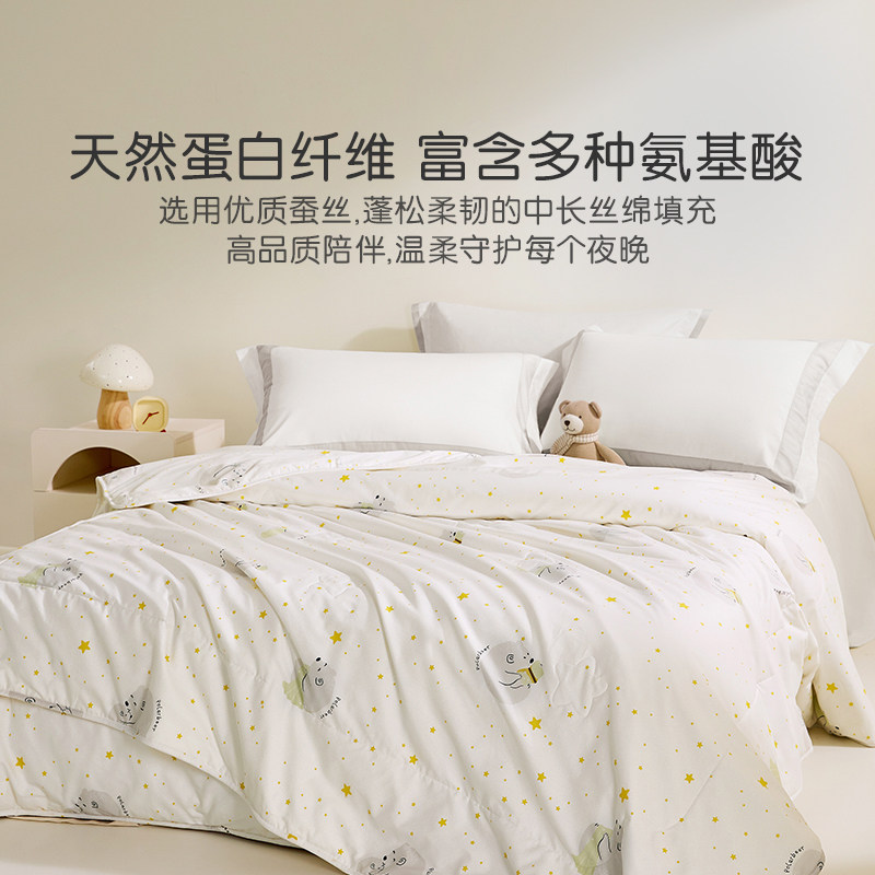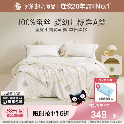 罗莱家纺儿童100蚕丝被子全棉A类春秋被二合一子母被芯夏凉空调被