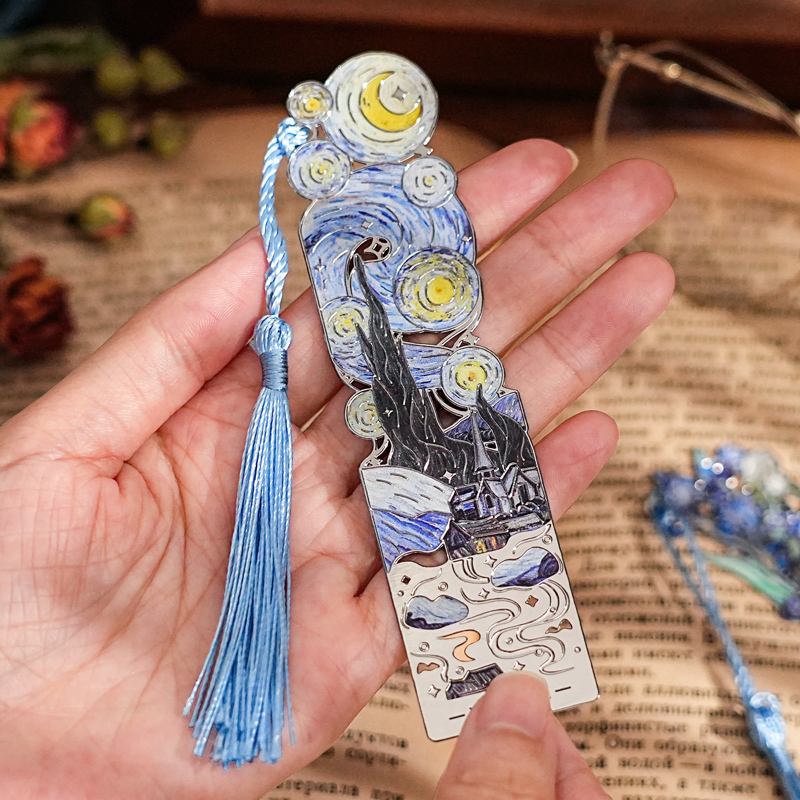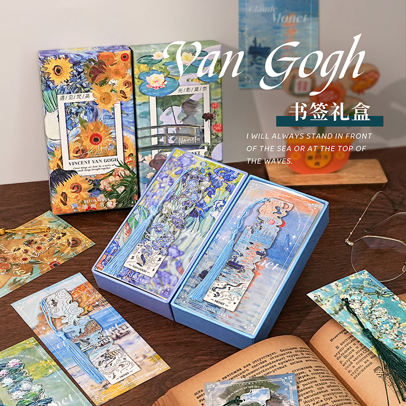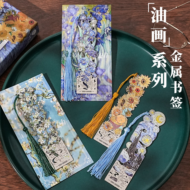 复古油画镂空金属书签教师节礼物定制高档精致创意高颜值精美礼品刻字立体黄铜卡片文创古典故宫莫奈风纪念品