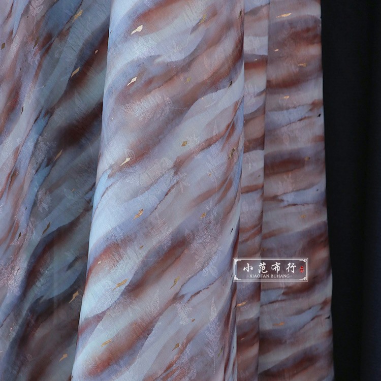 流动的海盐咖啡 竖条烫金印花布料 锦纶暗纹提花旗袍连衣裙面料