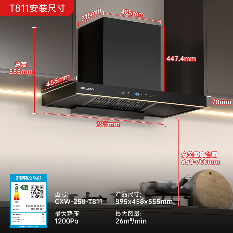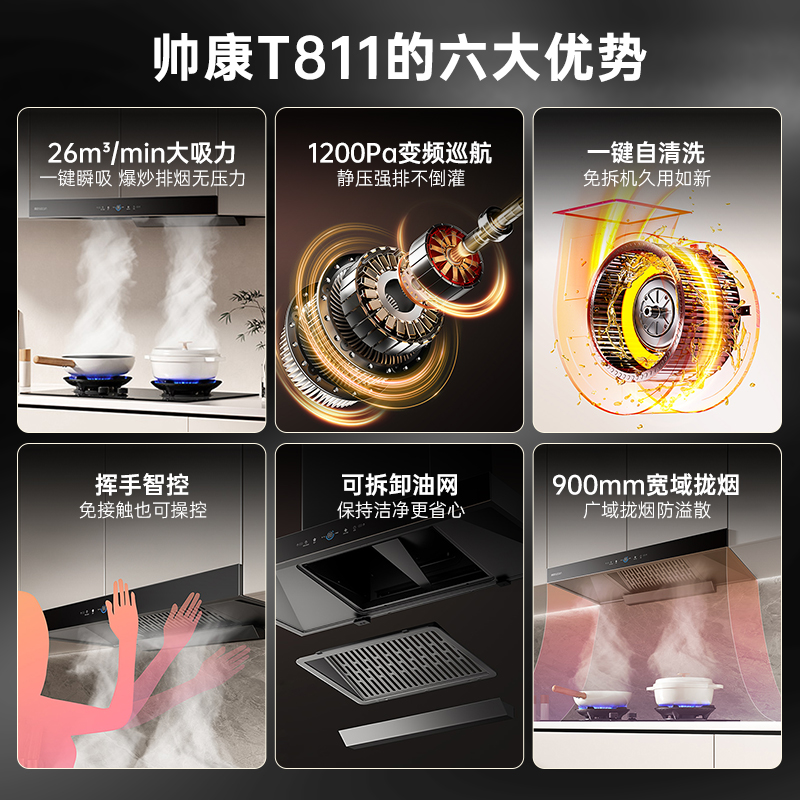 帅康T811欧式大吸力抽油烟机燃气灶套餐家用顶吸烟机以旧换新补贴
