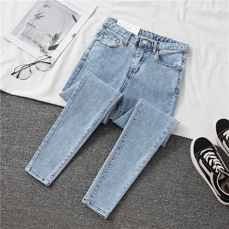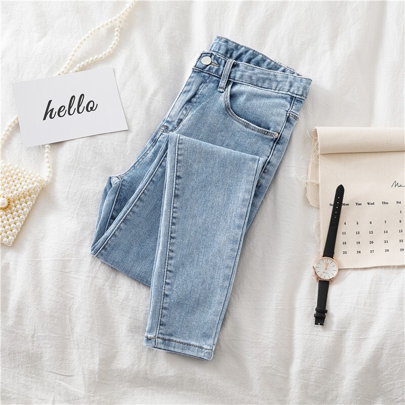 裤子女浅色小个子牛仔修身显瘦韩版铅笔春秋高腰黑色九分裤潮薄款