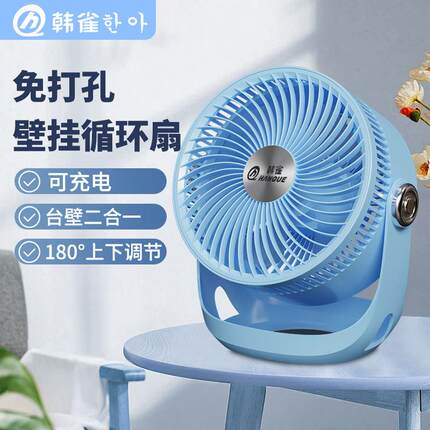 韩雀空气循环扇摇头循环扇家用香熏台壁两用电风扇折叠风扇充电款