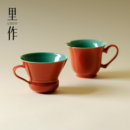 里作 高颜值故宫红带把主人杯功高端陶瓷茶具茶杯新中式品茗单杯
