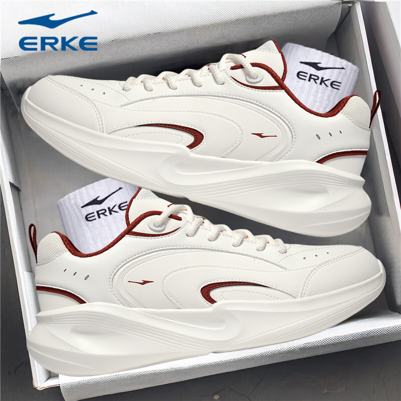 鸿星尔克官网新款白色皮面跑步鞋