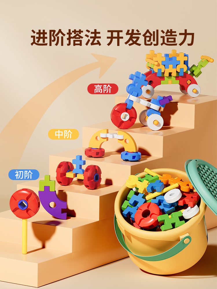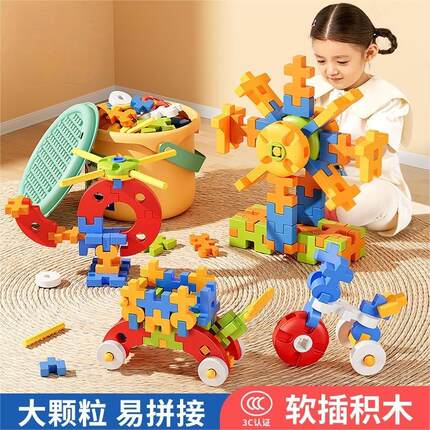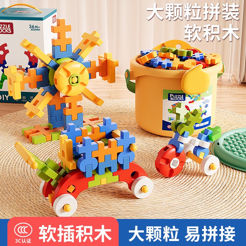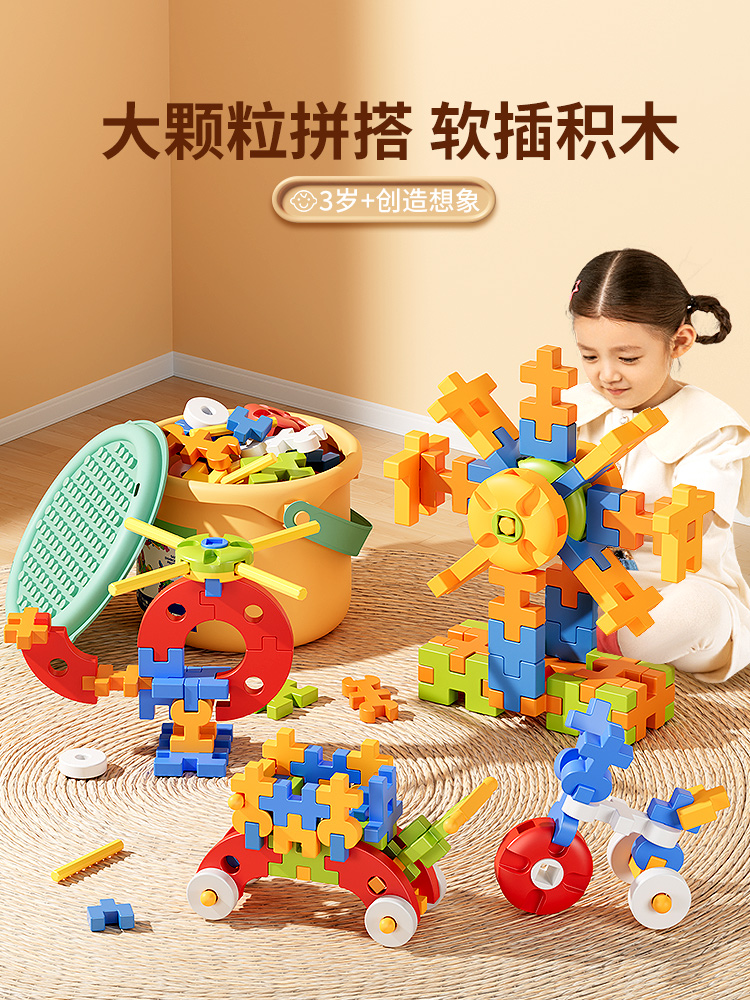儿童拼插装大颗粒软积木玩具男女孩思维益智3到6岁礼物生日图新年