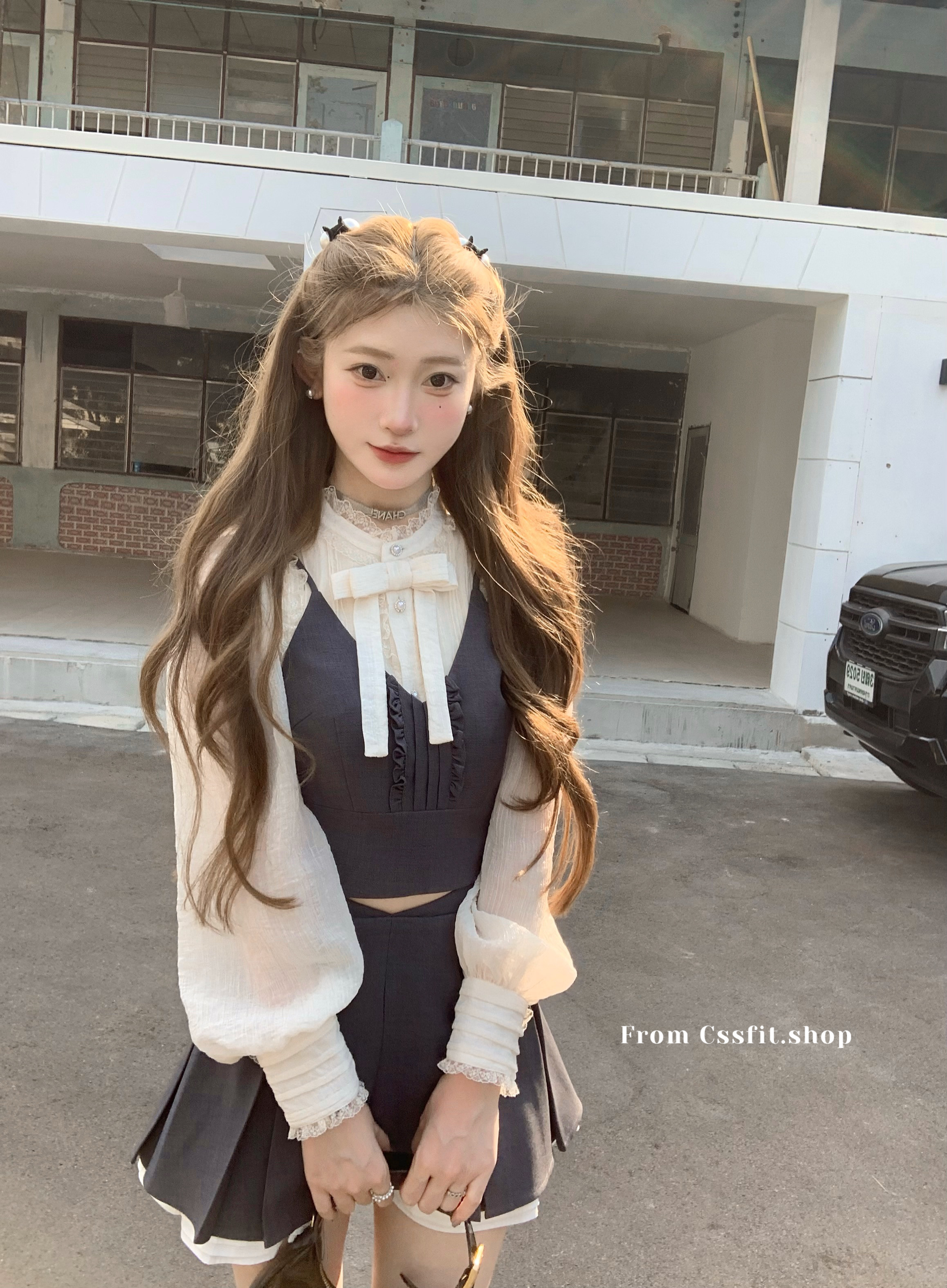 sst系列吊带马甲百褶裙三件套