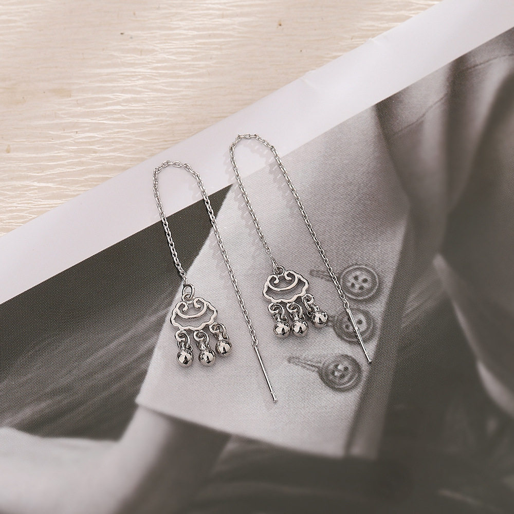s925纯银平安锁耳线2023年新款潮小众设计高级感民族风长命锁耳坠