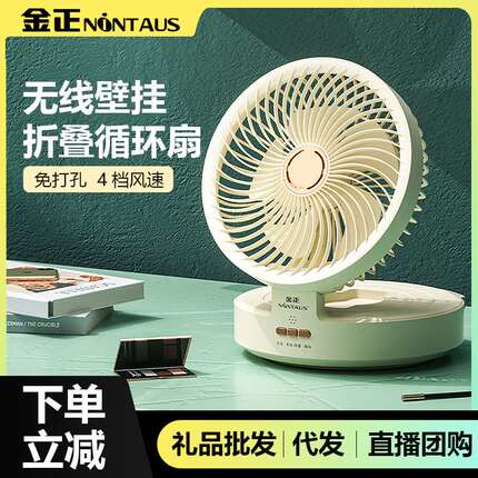 金正桌面迷你折叠循环扇摇头静音办公室usb充电台壁两用小电风扇