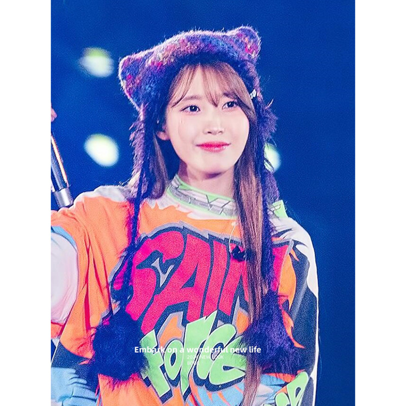 李知恩IU同款紫色针织帽子女秋冬季新款时尚保暖防寒毛线护耳帽潮