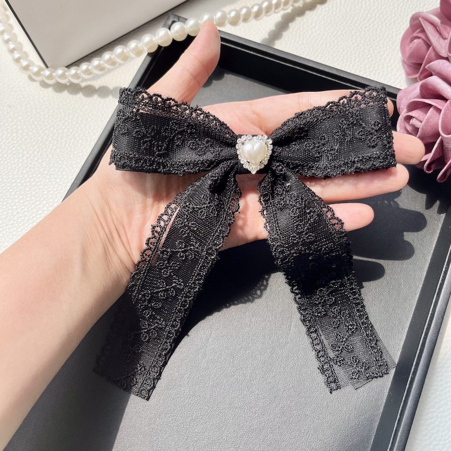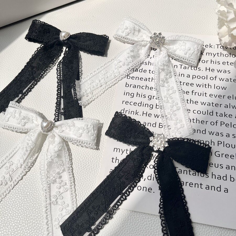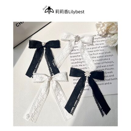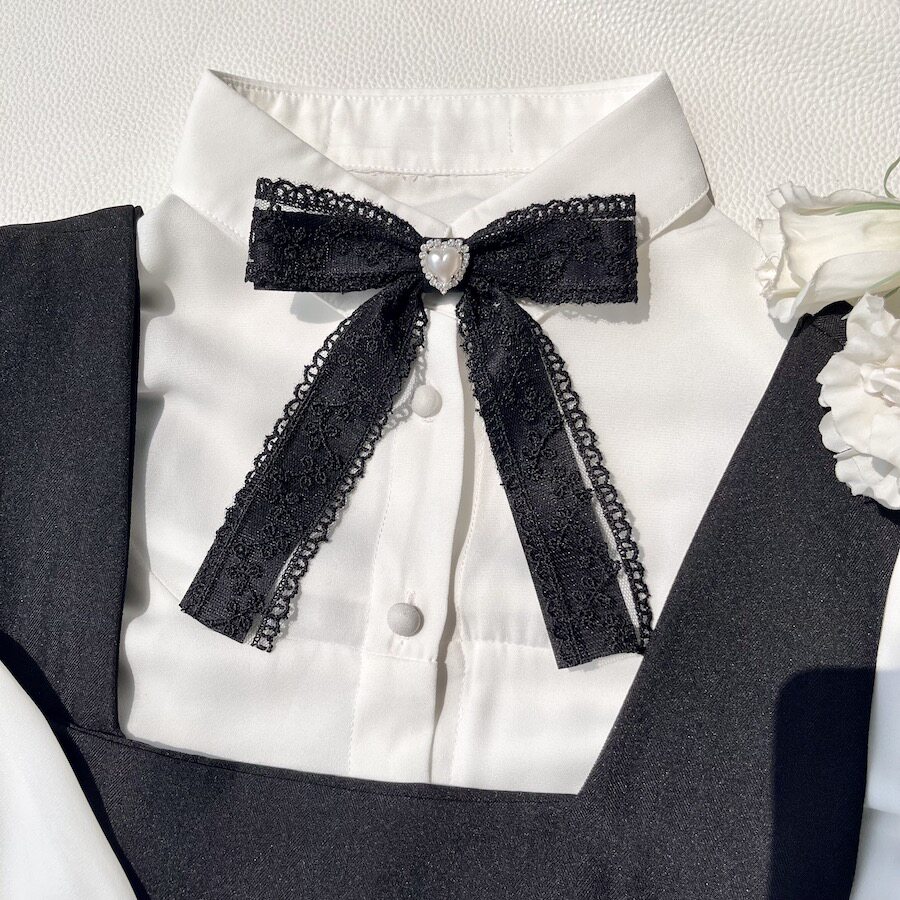 蕾丝花边蝴蝶结爱心水钻领结大小姐胸针配饰百搭少女感甜美纯色韩