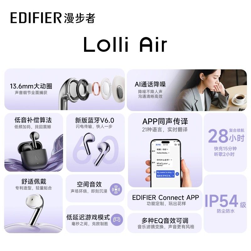 漫步者lolli air蓝牙耳机半入耳式无线降噪运动跑步游戏2025新款