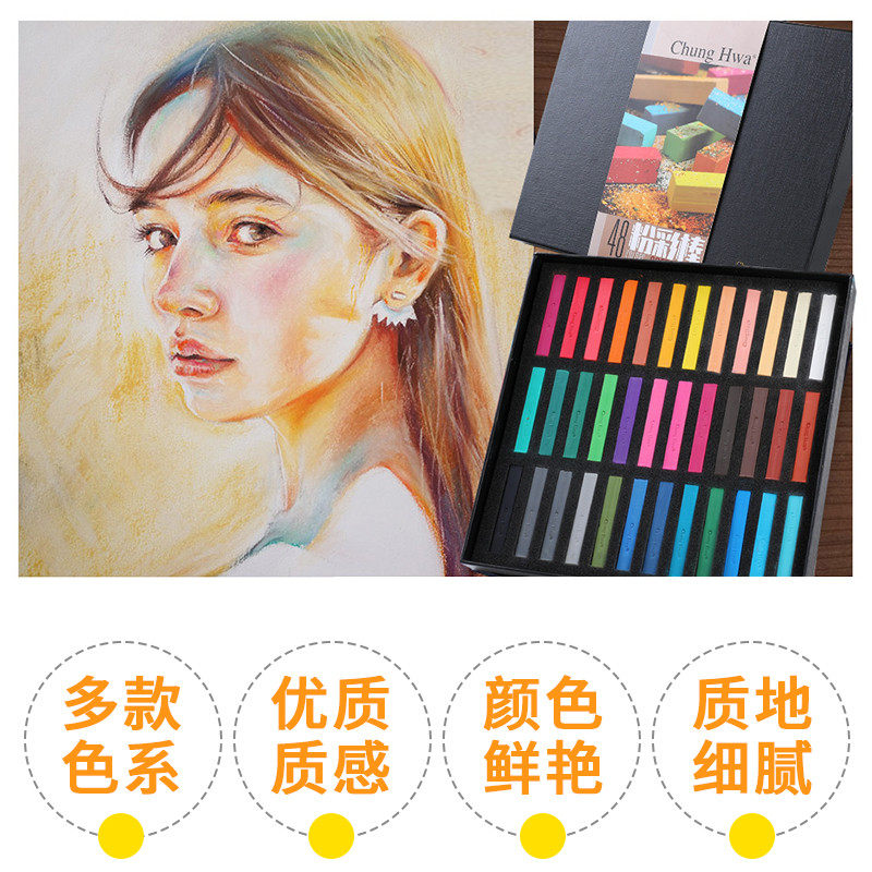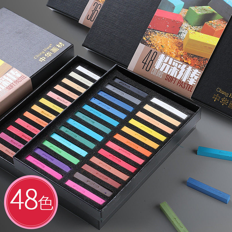 中华牌ChungHwa色粉笔48色36色彩色粉笔颜料小学生娃娃彩绘专业粉彩笔初学者手绘黑板报粉画画粉彩棒美术用品