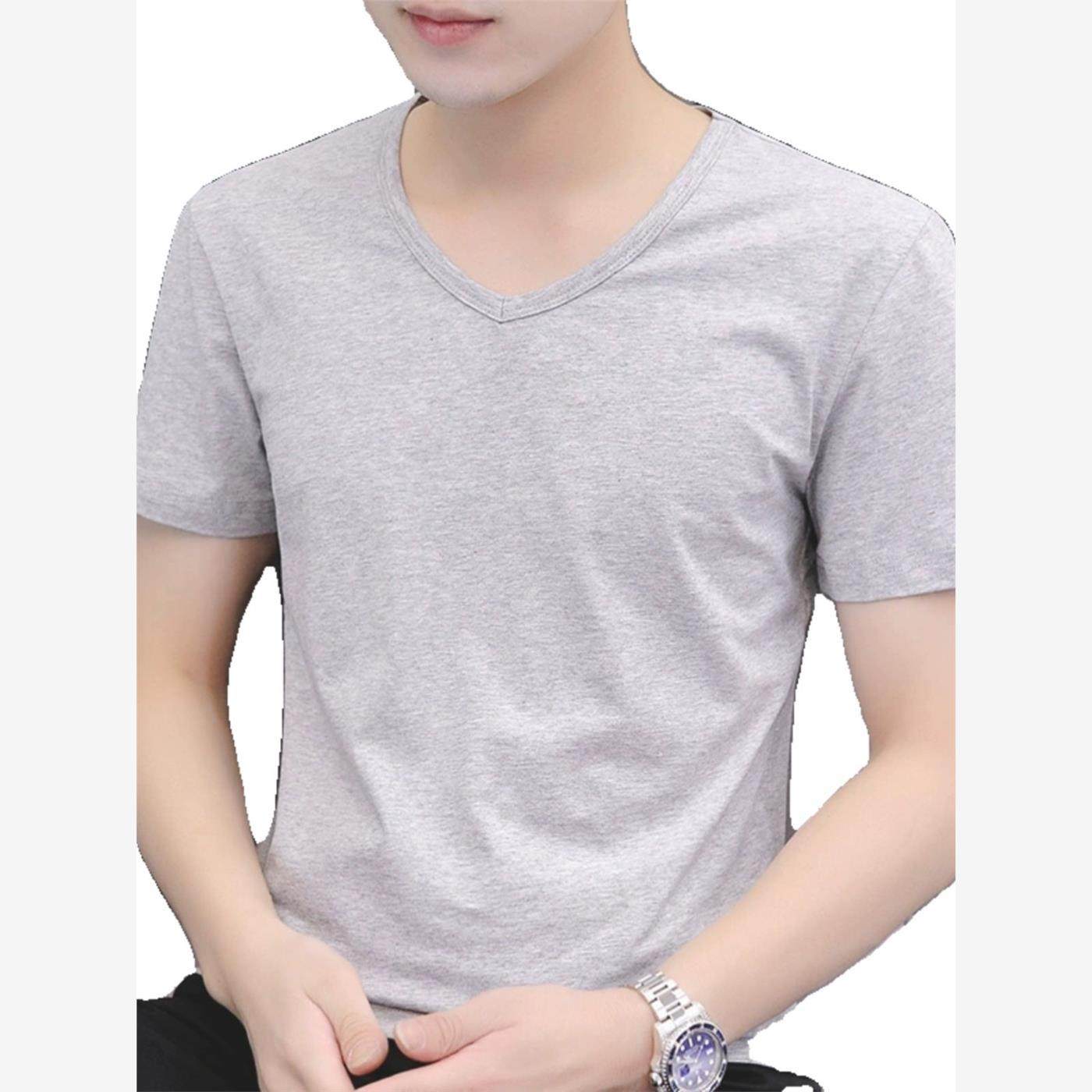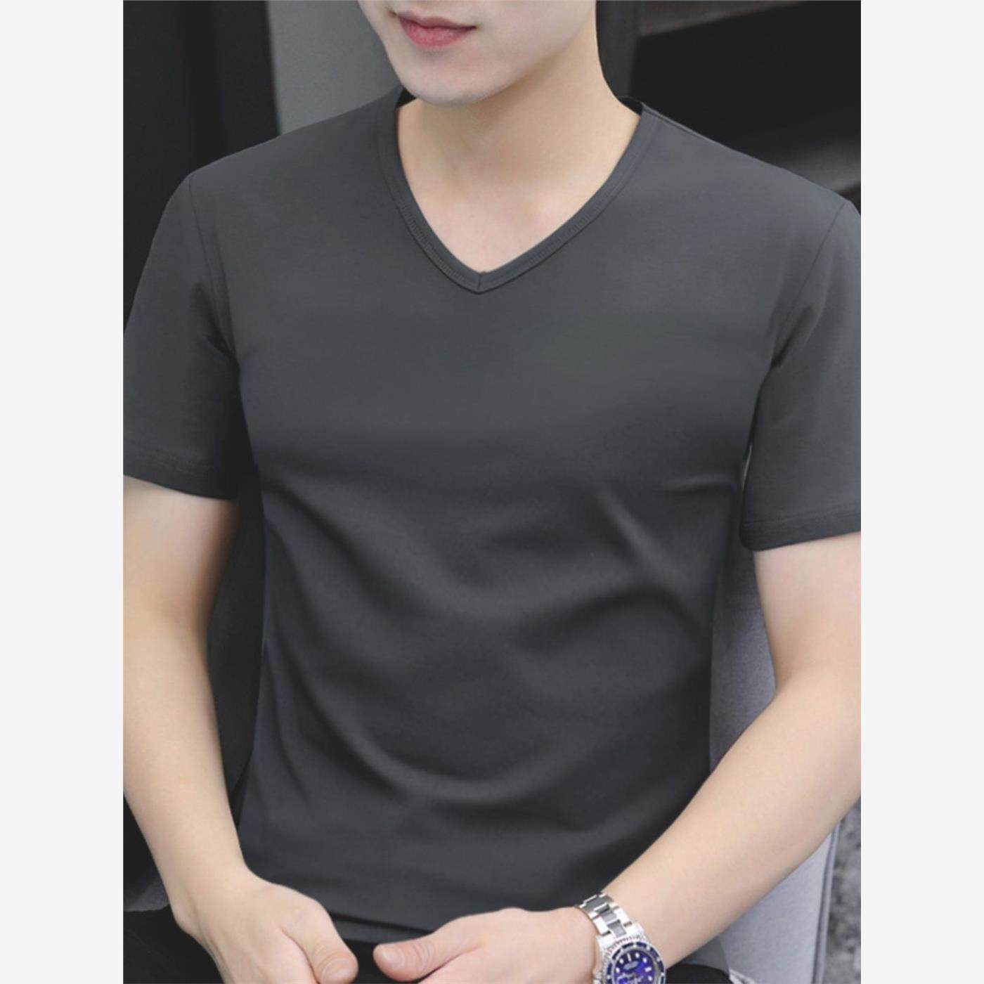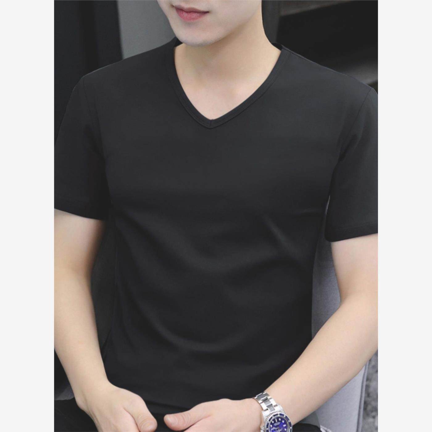 男士短袖t恤男夏季新款鸡心领纯色V领修身内搭打底衫体恤上衣
