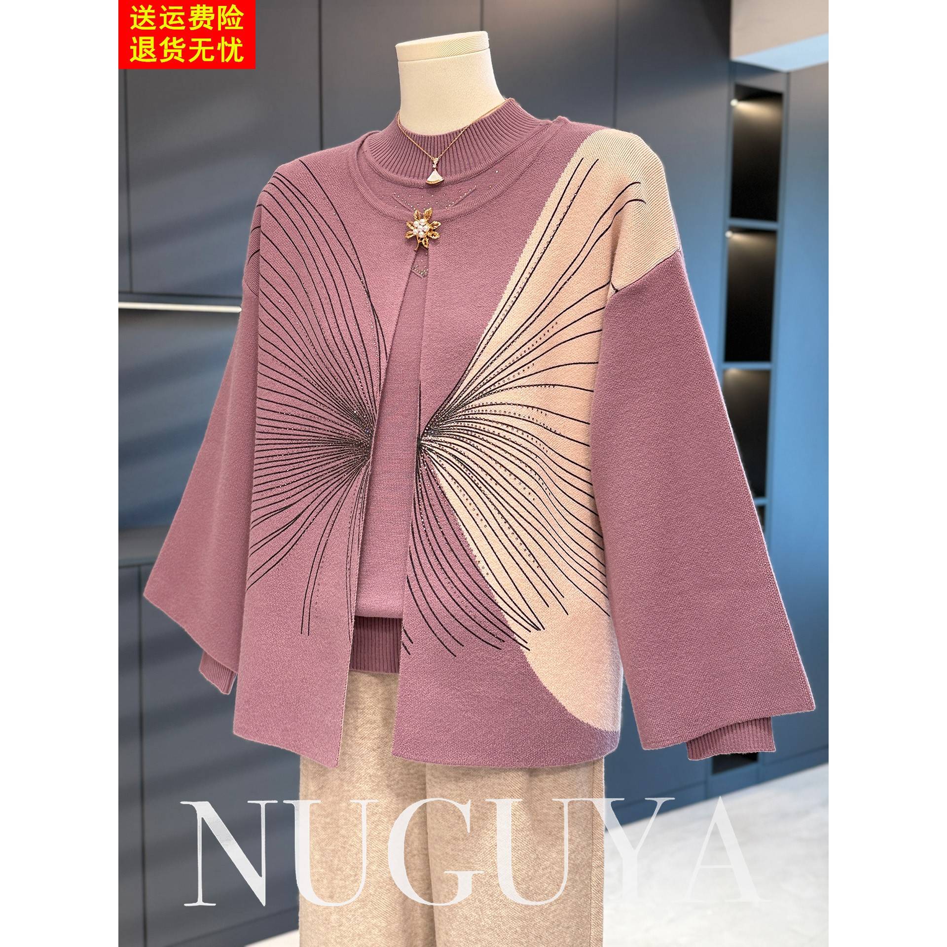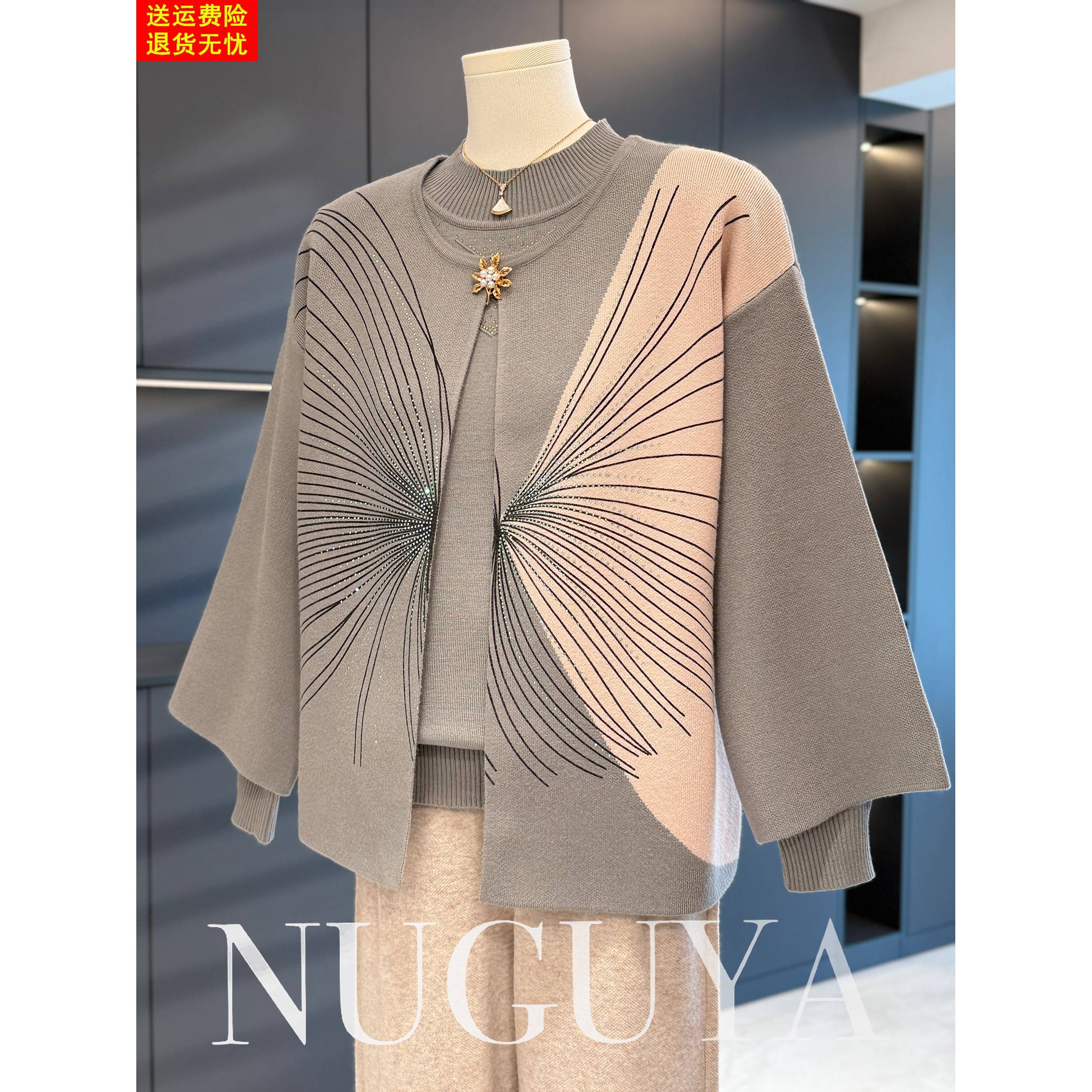 时尚妈妈装针织衫套装女秋冬新款奶奶装上衣中老年毛衣婆婆两件套