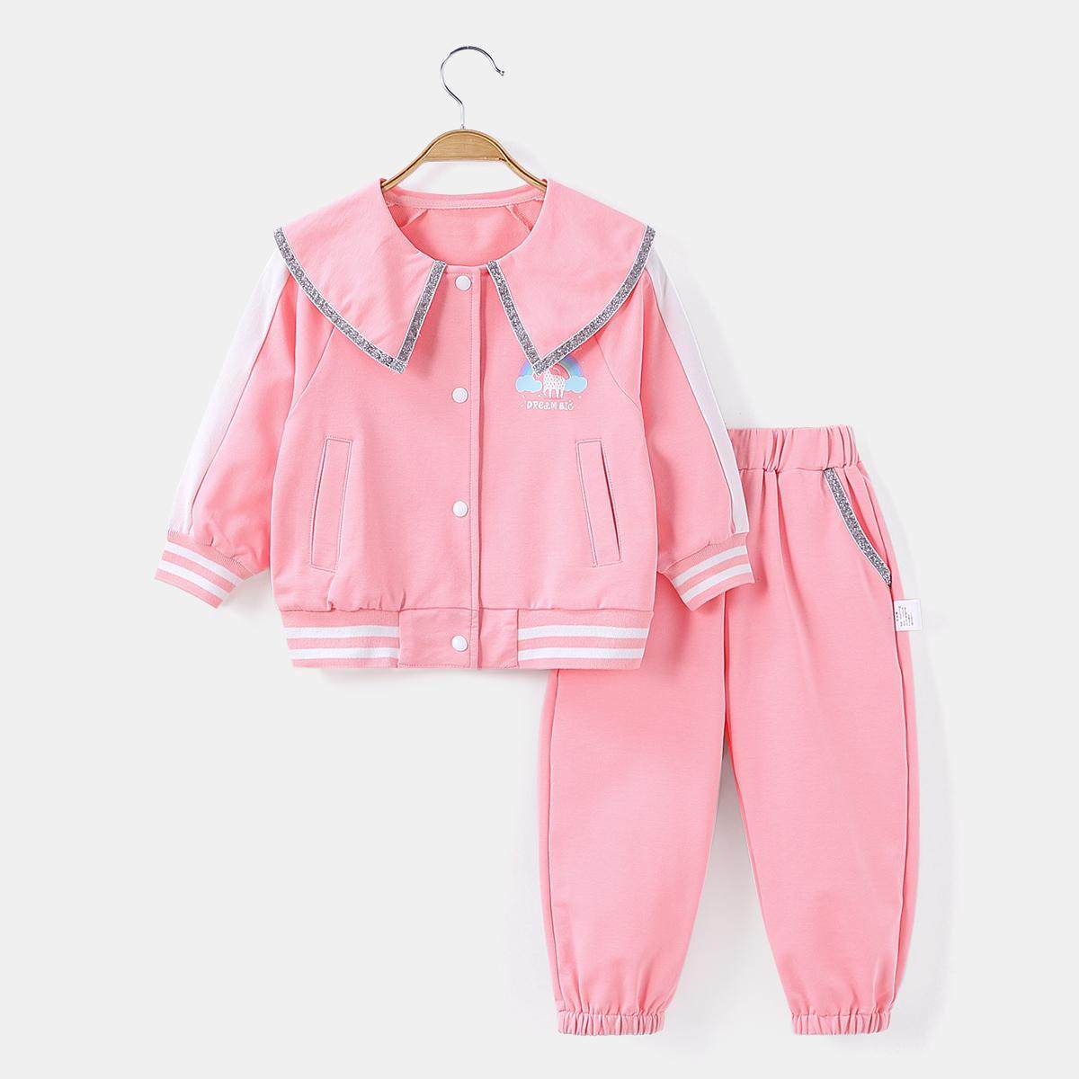 【甜美大翻领】童装女宝宝春季休闲运动套装小童卫衣两件套春秋款
