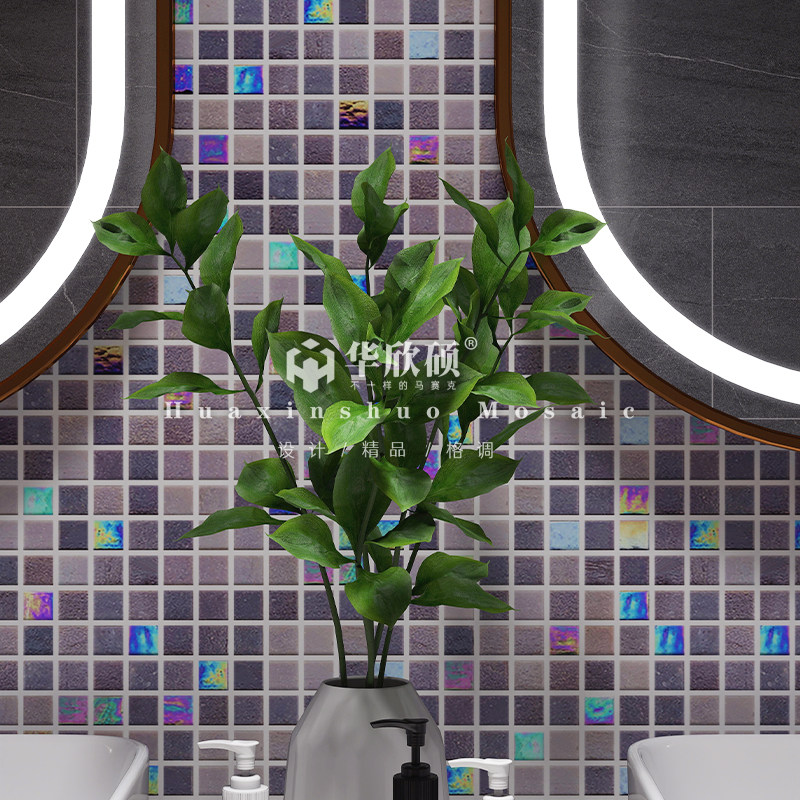 华欣硕紫色幻彩金线玻璃马赛克