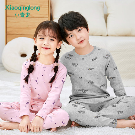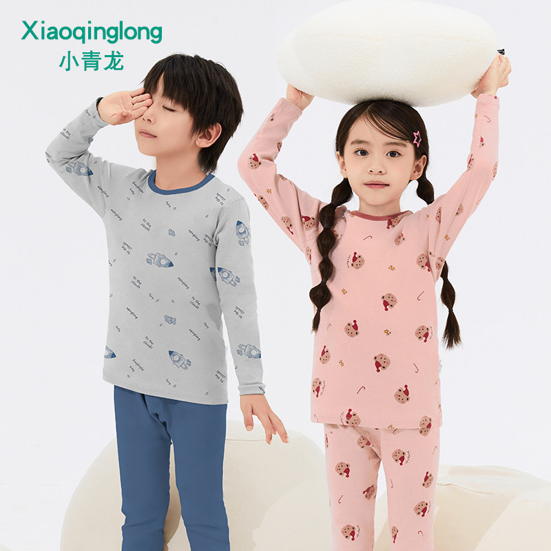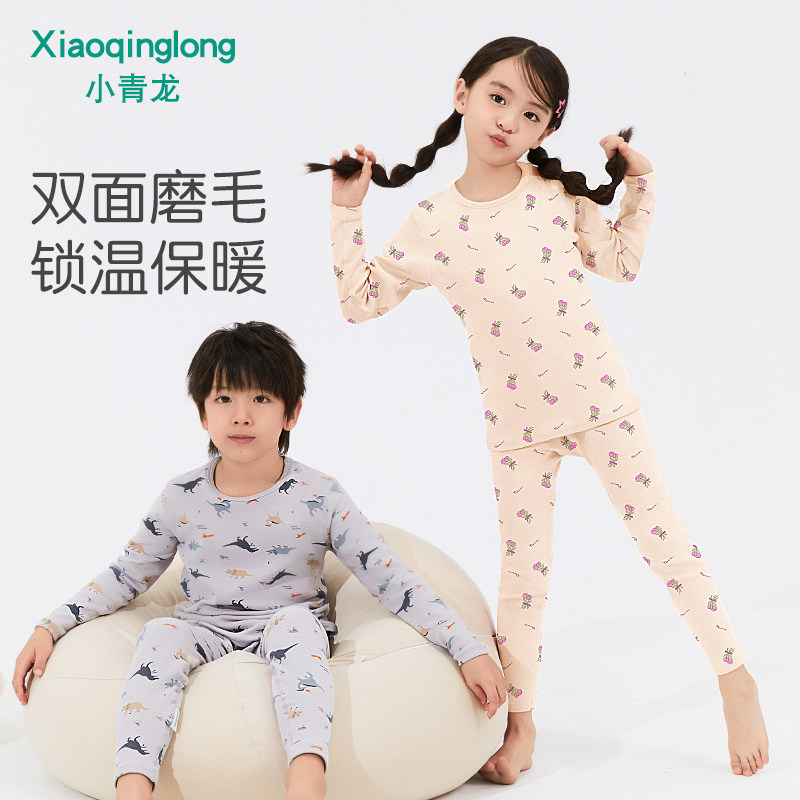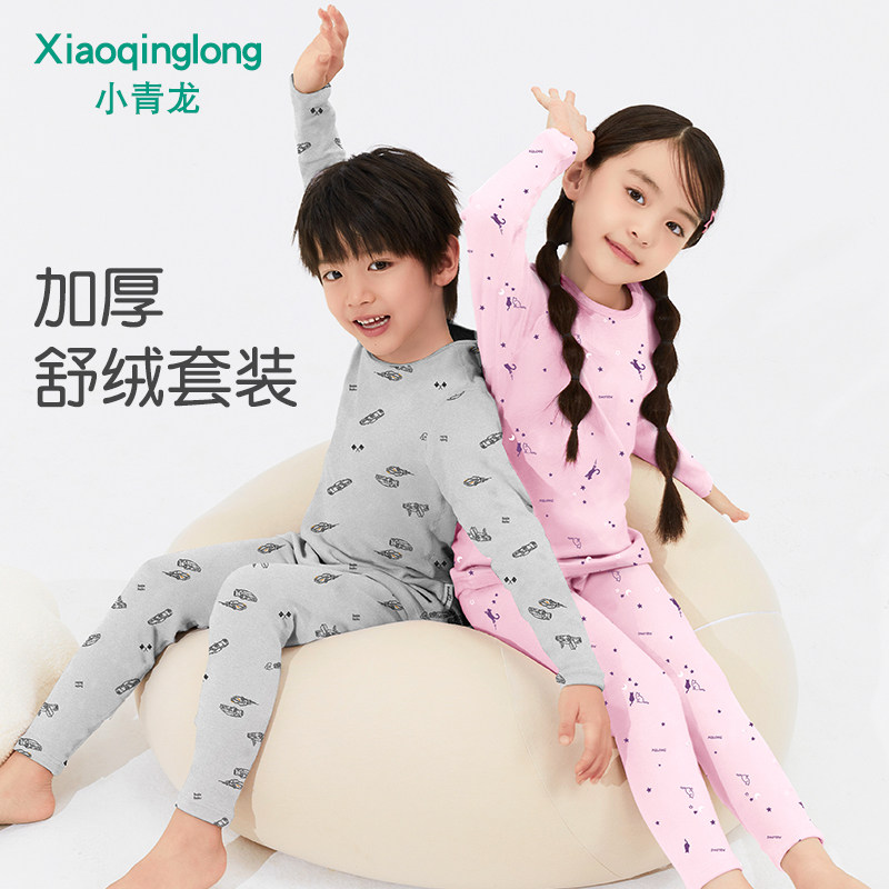 小青龙儿童内衣套装纯棉莱卡舒绒保暖套装男童女童春秋季中大童冬