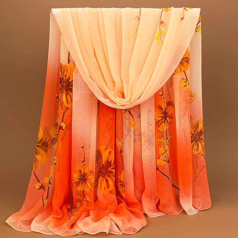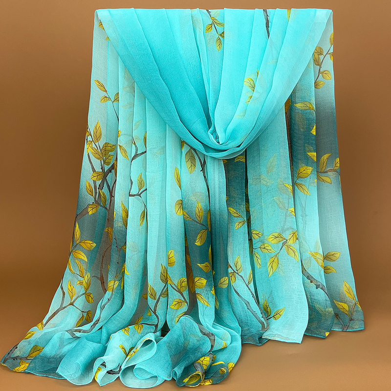 金黄色丝巾百搭秋冬鳄鱼皱纱巾