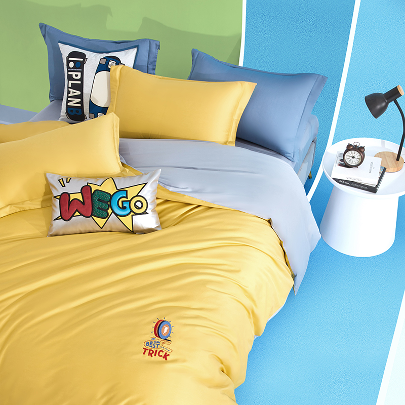 梦洁宝贝60支长绒棉儿童四件套刺绣全棉纯棉床单被套三件套床品