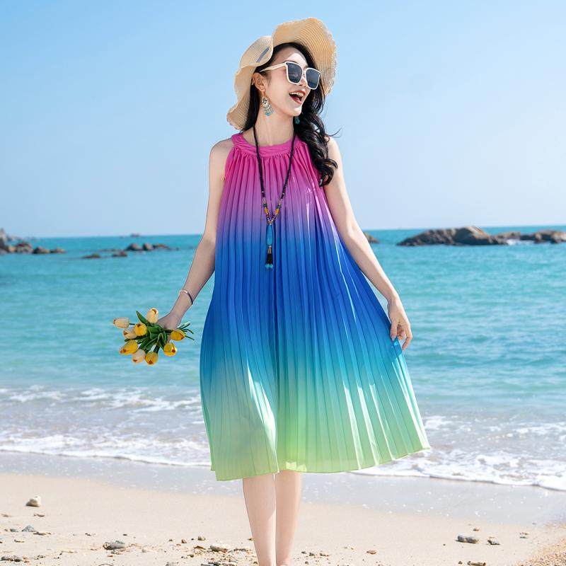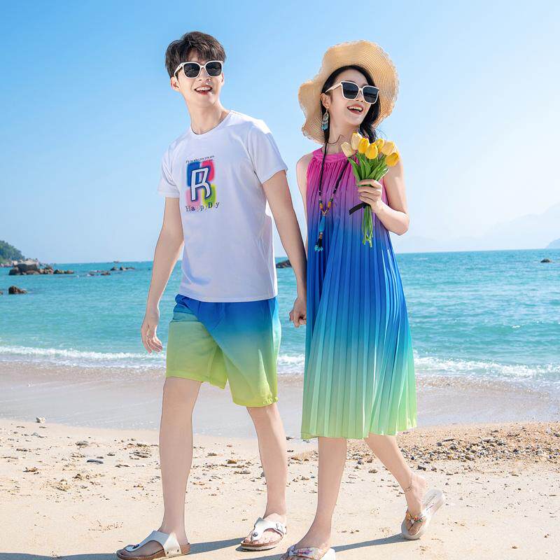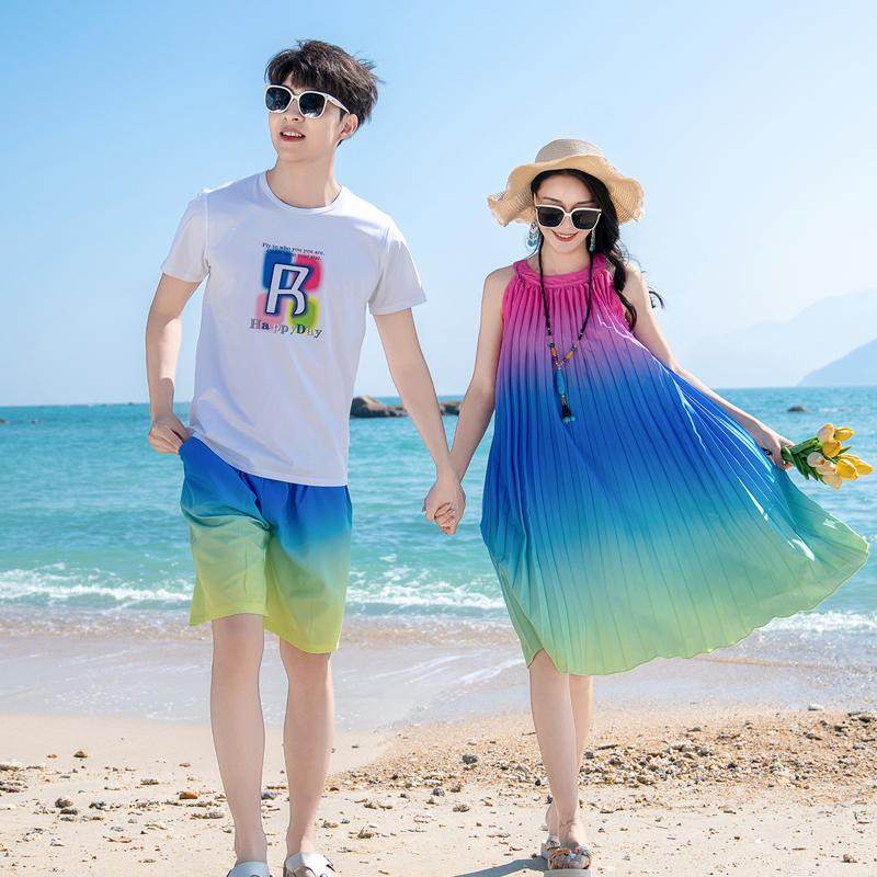 沙滩裙小个子情侣装夏套装海边度假海岛三亚泰国大码胖MM旅游穿搭