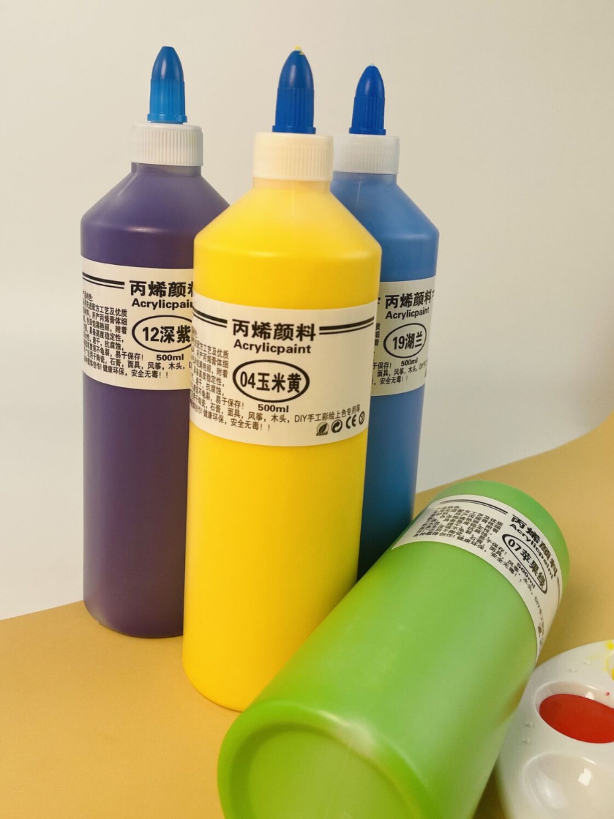 工厂大瓶500ml丙烯颜料diy丙烯画石膏画儿童无毒无味摆地摊