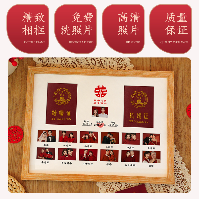 放结婚证相框结婚登记照周年纪念日收纳创意摆件领证礼物照片摆台