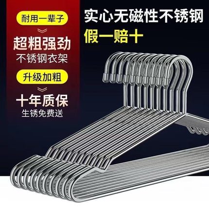 实心不生锈不掉色不锈钢衣架大衣衣架加厚加粗挂防滑无痕衣架