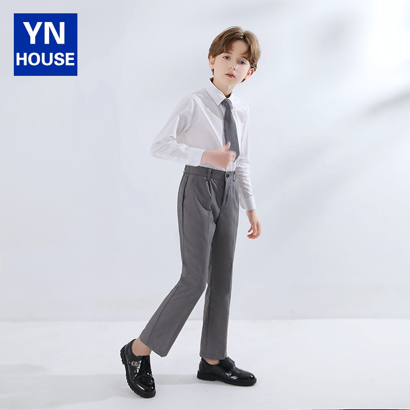 儿童春秋白衬衣中大童演出白衬衫男童长袖衬衫小学生合唱演出校服