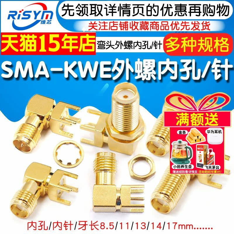 SMA-KWE 外螺内孔/针 加长 射频座 RF天线座 弯头卧式 天线接头