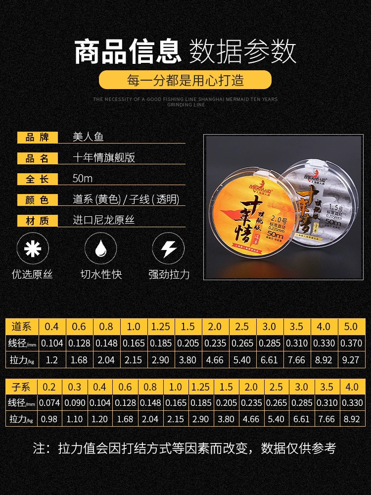 美人鱼鱼线主线子线十年情旗舰版超强拉力超柔软原丝尼龙线正品牌