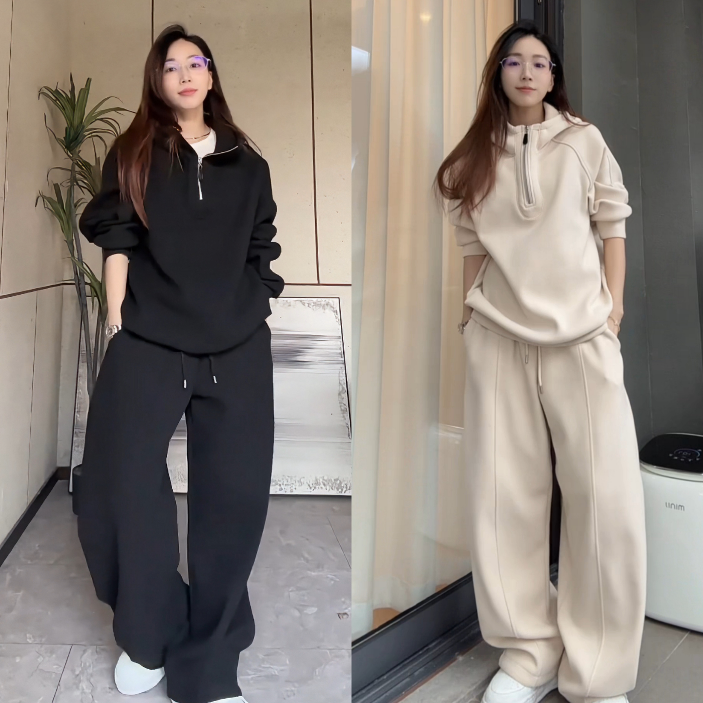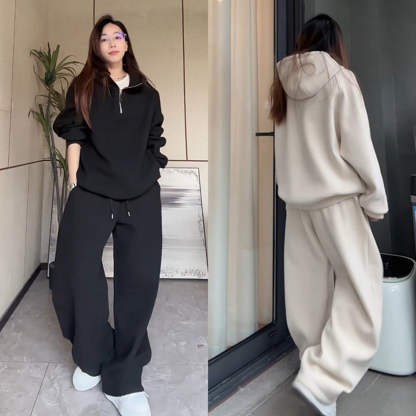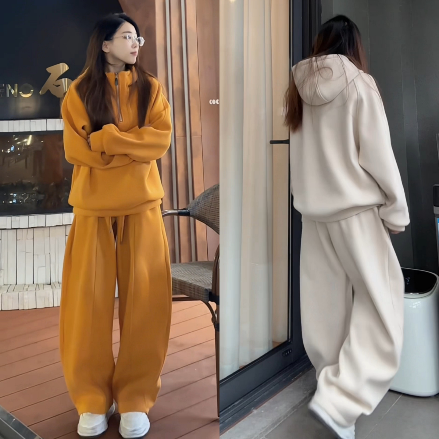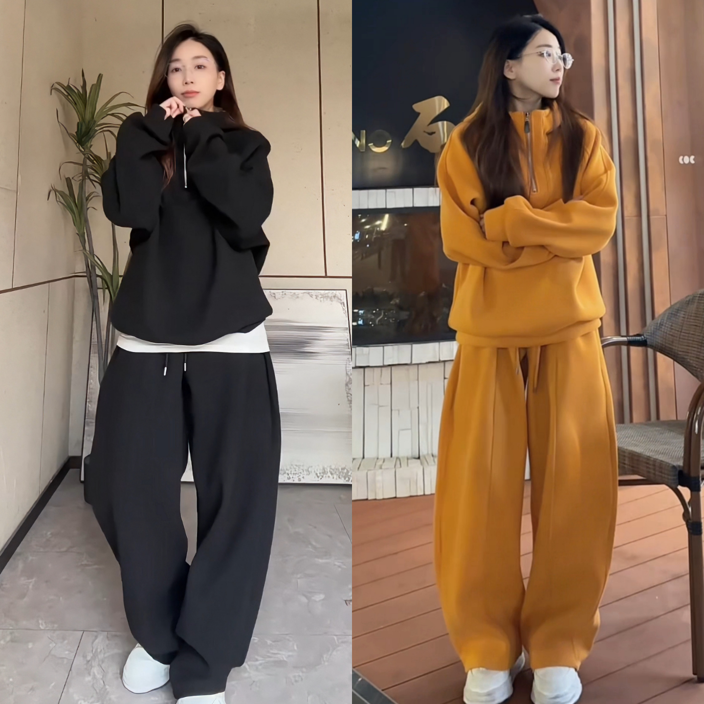 直播冬季加厚半拉链卫衣阔腿裤套装运动百搭高质感舒适男女两件套