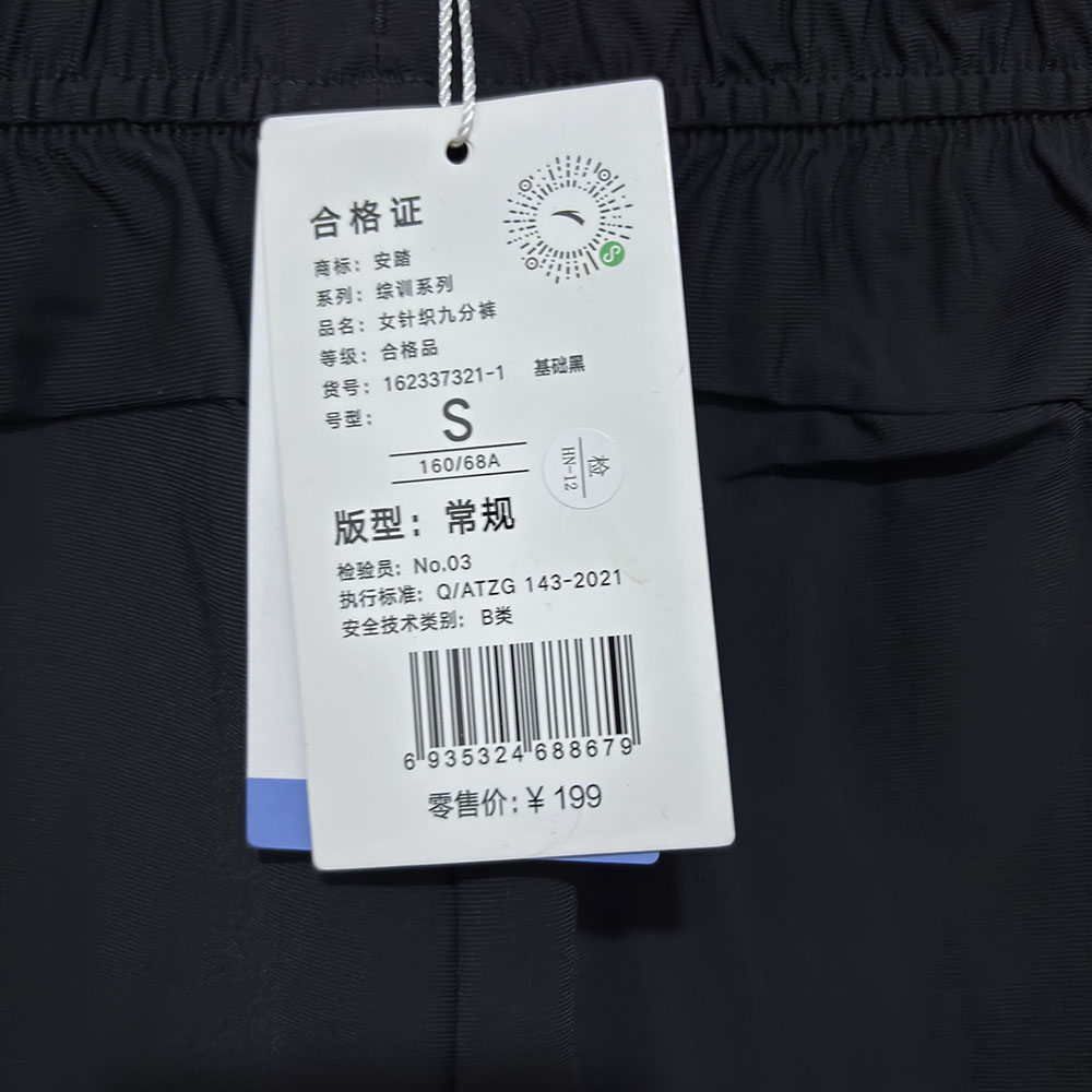 安踏正品春休闲梭织女运动九分裤