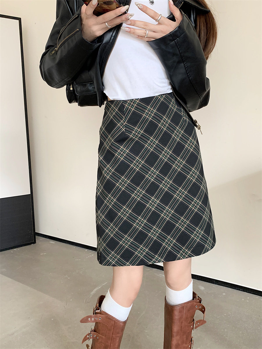 复古格子秋冬款格纹中长裙高腰a字半身裙大码显瘦短裙一步包臀裙