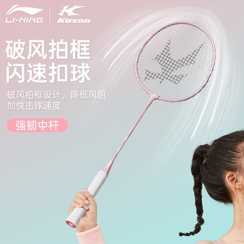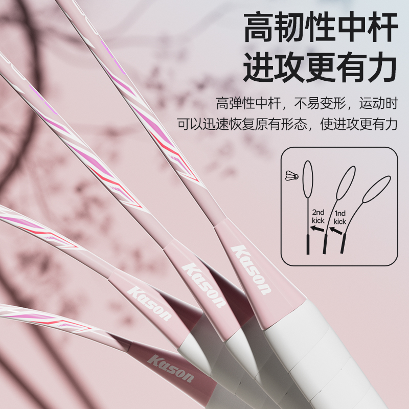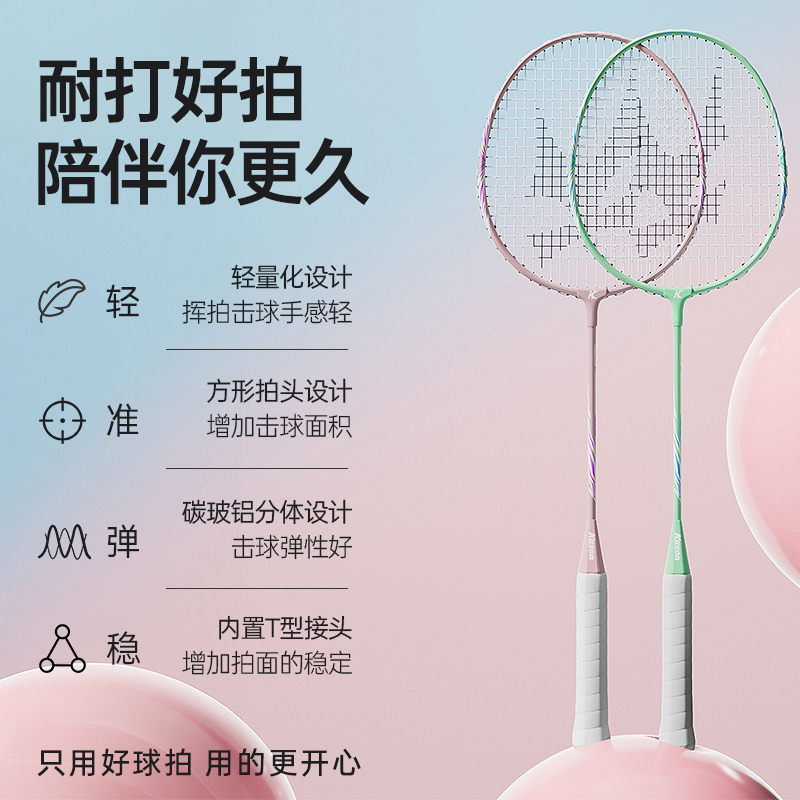 凯胜羽毛球拍官方正品碳纤维成人雷霆08超轻双拍专业耐打学生套装