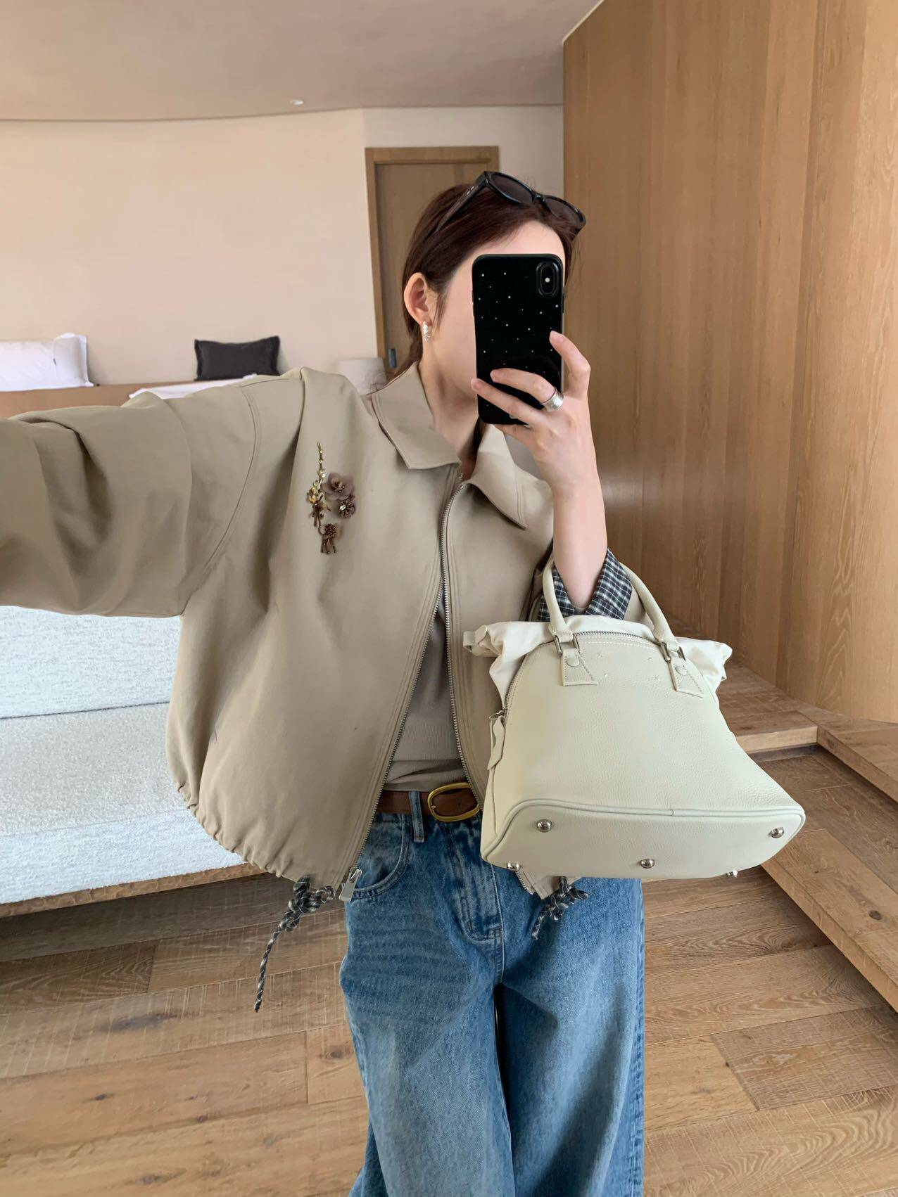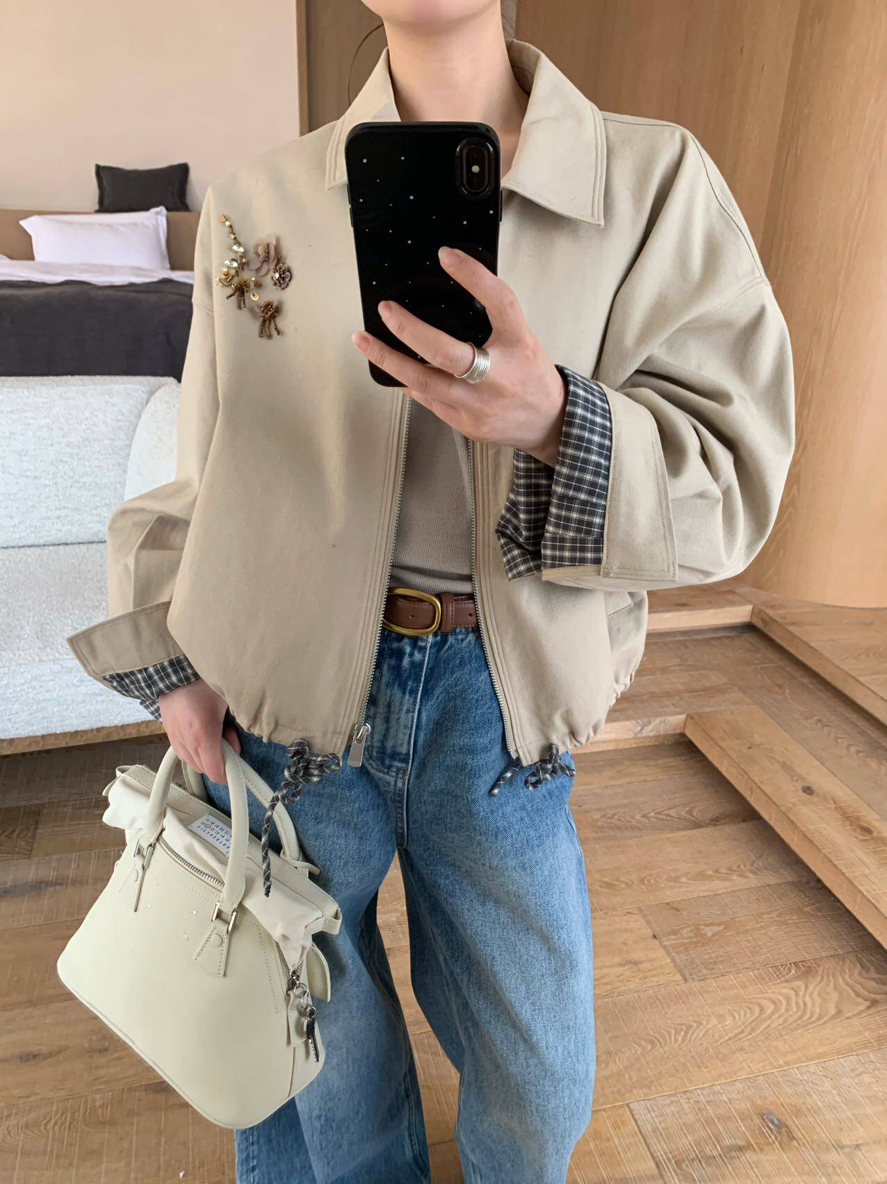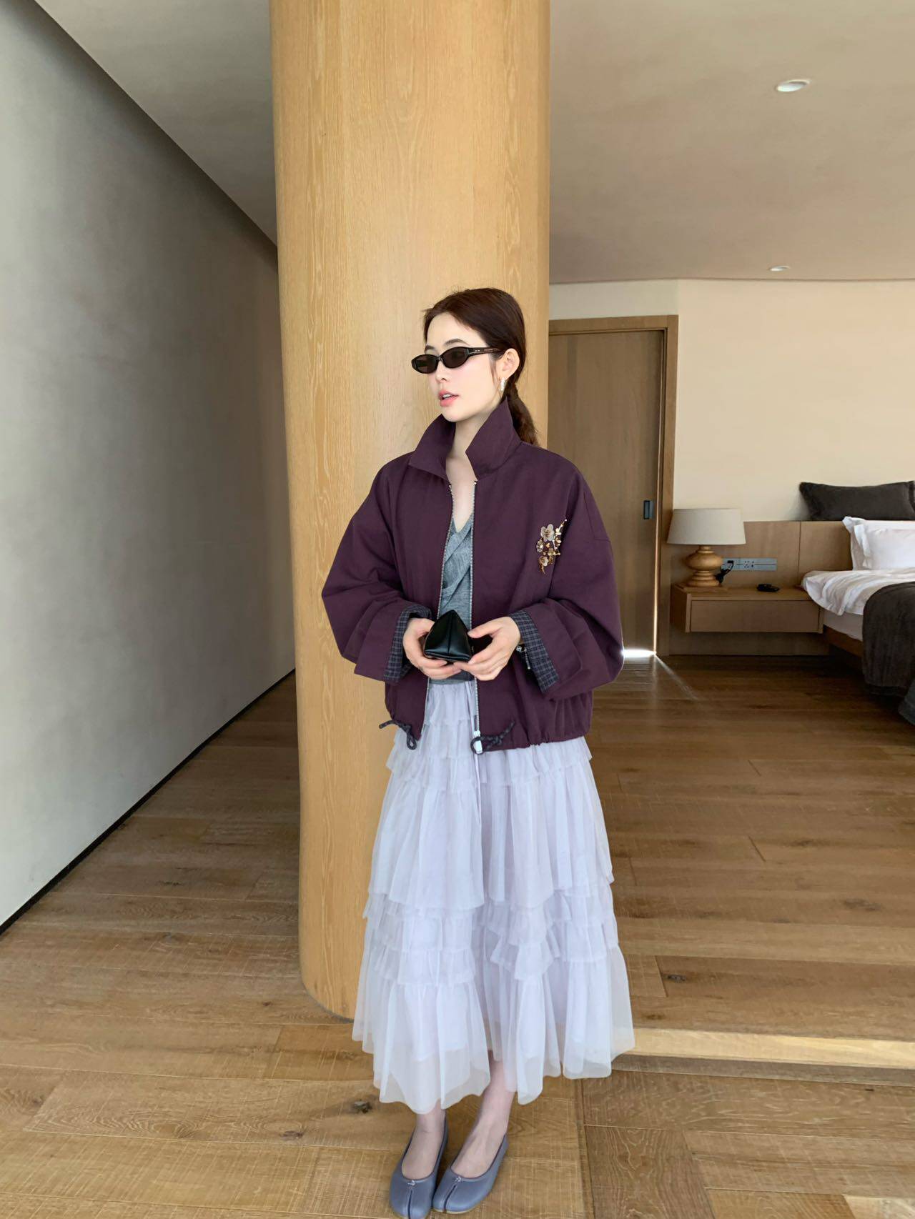 卡蔓kamanshi30852春紫色工装外套女复古撞色夹克小众休闲棒球服