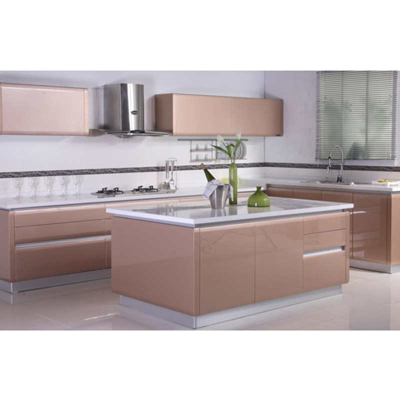 露水河开放厨房整体橱柜定做简约汽车金属烤漆厨柜门板整体石英石