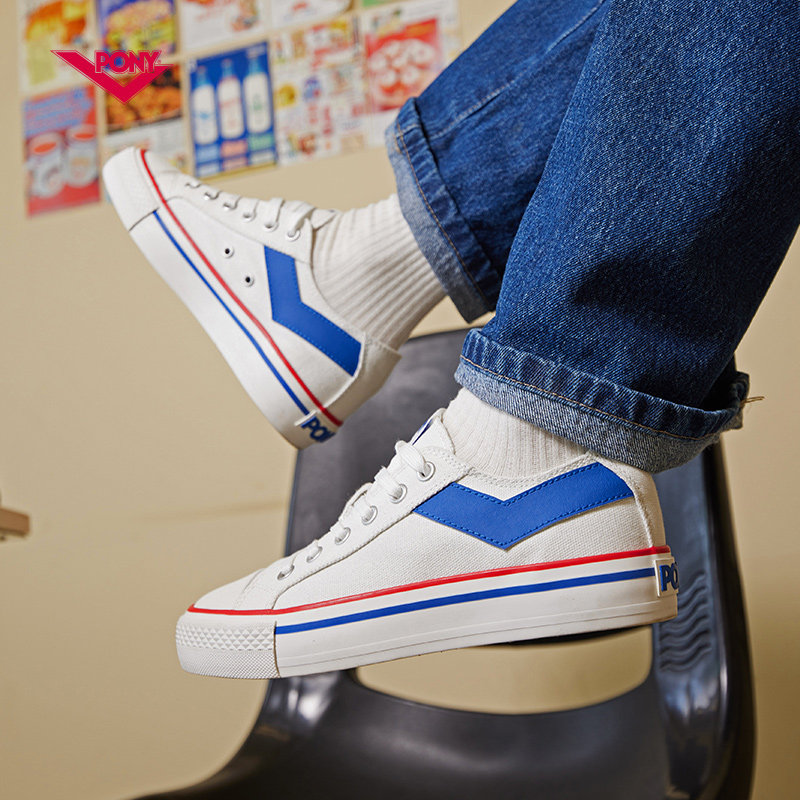 【胡可推荐】PONY男女鞋复古撞色拼接休闲帆布耐磨舒适透气帆布鞋