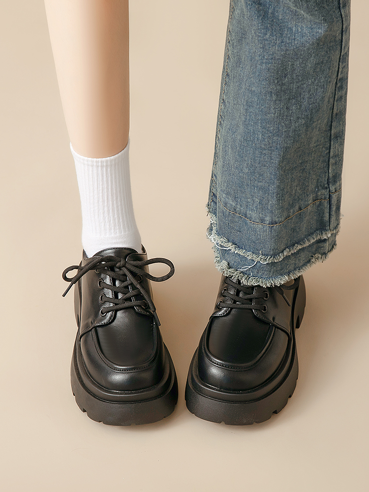 奥古狮登小皮鞋女新款2025秋冬黑英伦风厚底复古乐福鞋配裙子单鞋