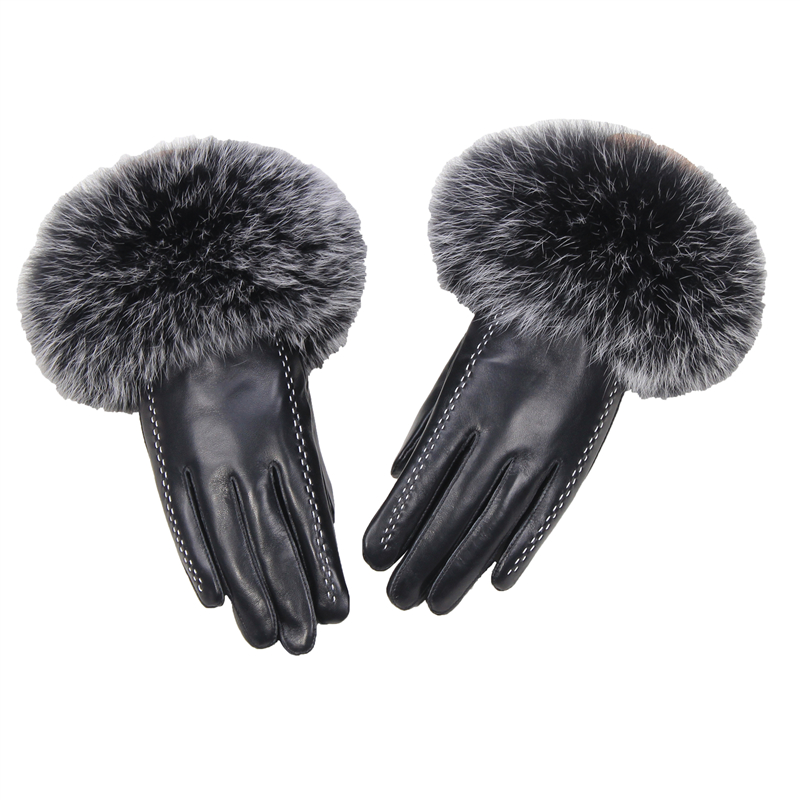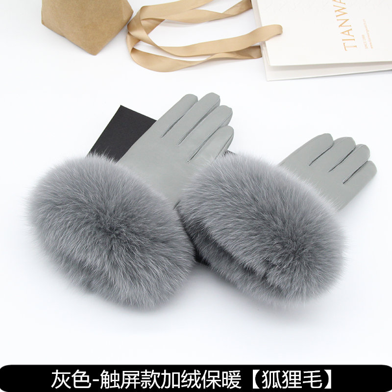 狐狸毛加厚保暖女羊皮触屏手套