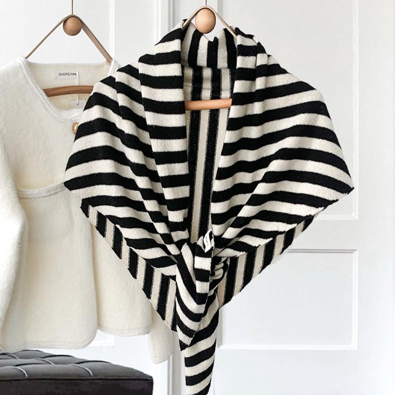 100%澳洲纯羊毛围巾女2025新款冬季大号三角巾韩版条纹百搭披肩