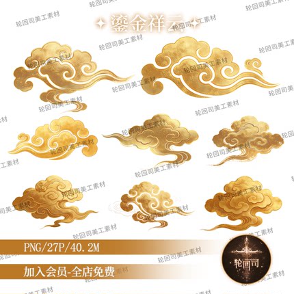 原创可商复古国风中式传统祥云纹理云纹装饰元素png免扣设计素材