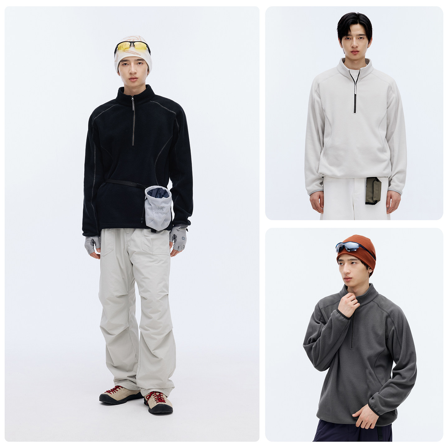 RESTICK 轻量高暖户外中间层抗静电双面摇粒绒机能半开襟立领卫衣