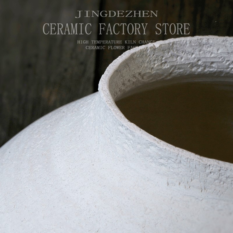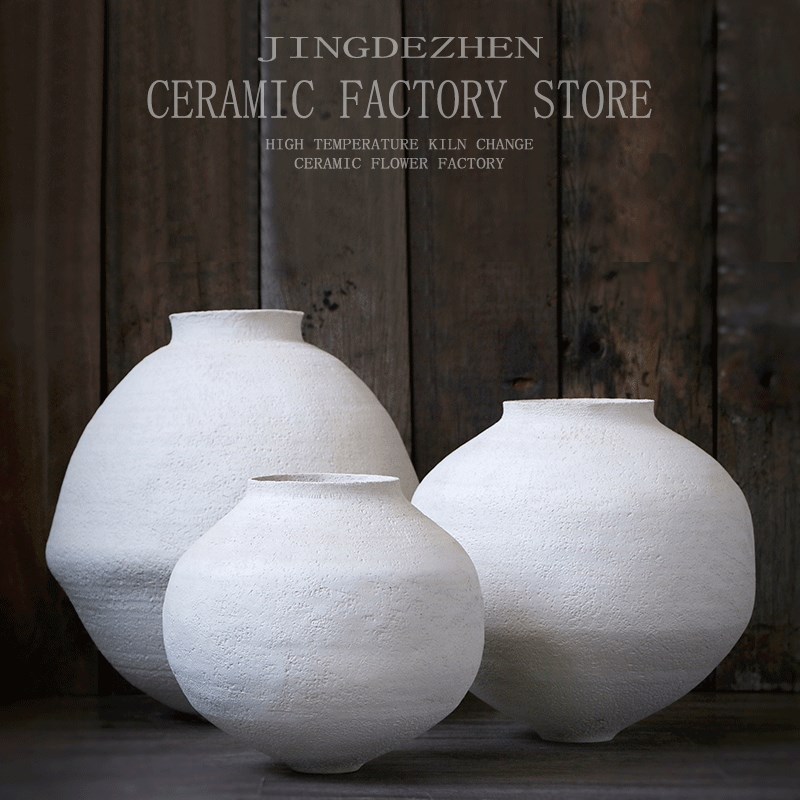 新中式白色土陶罐落地大口径陶瓷花瓶摆件客厅插花酒店样板间饰品